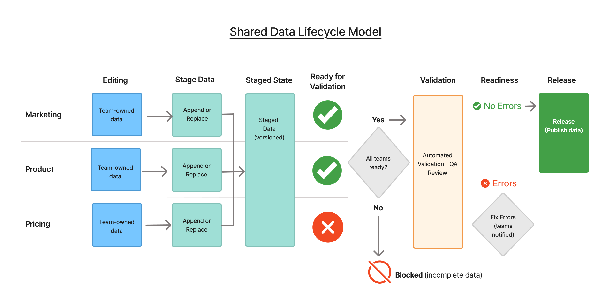 Problem: Multiple teams worked on shared data within the same platform, but the system had no concept of shared state or readiness. Also ownership, while enforced through permissions - was not visible where cross-team coordination was required. This led to version conflicts, manual coordination, and unreliable releases.